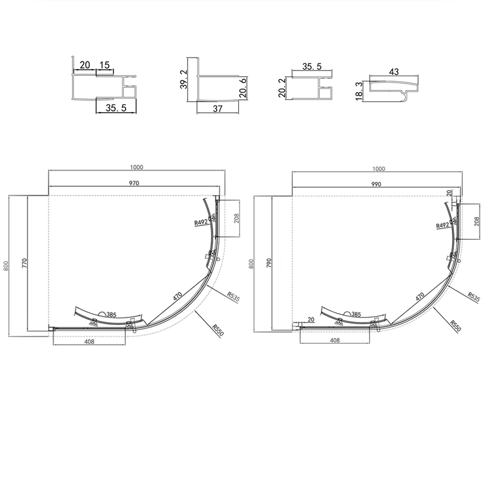 Venturi 6+ 1000mm x 800mm 2 Door Offset Quadrant Enclosure