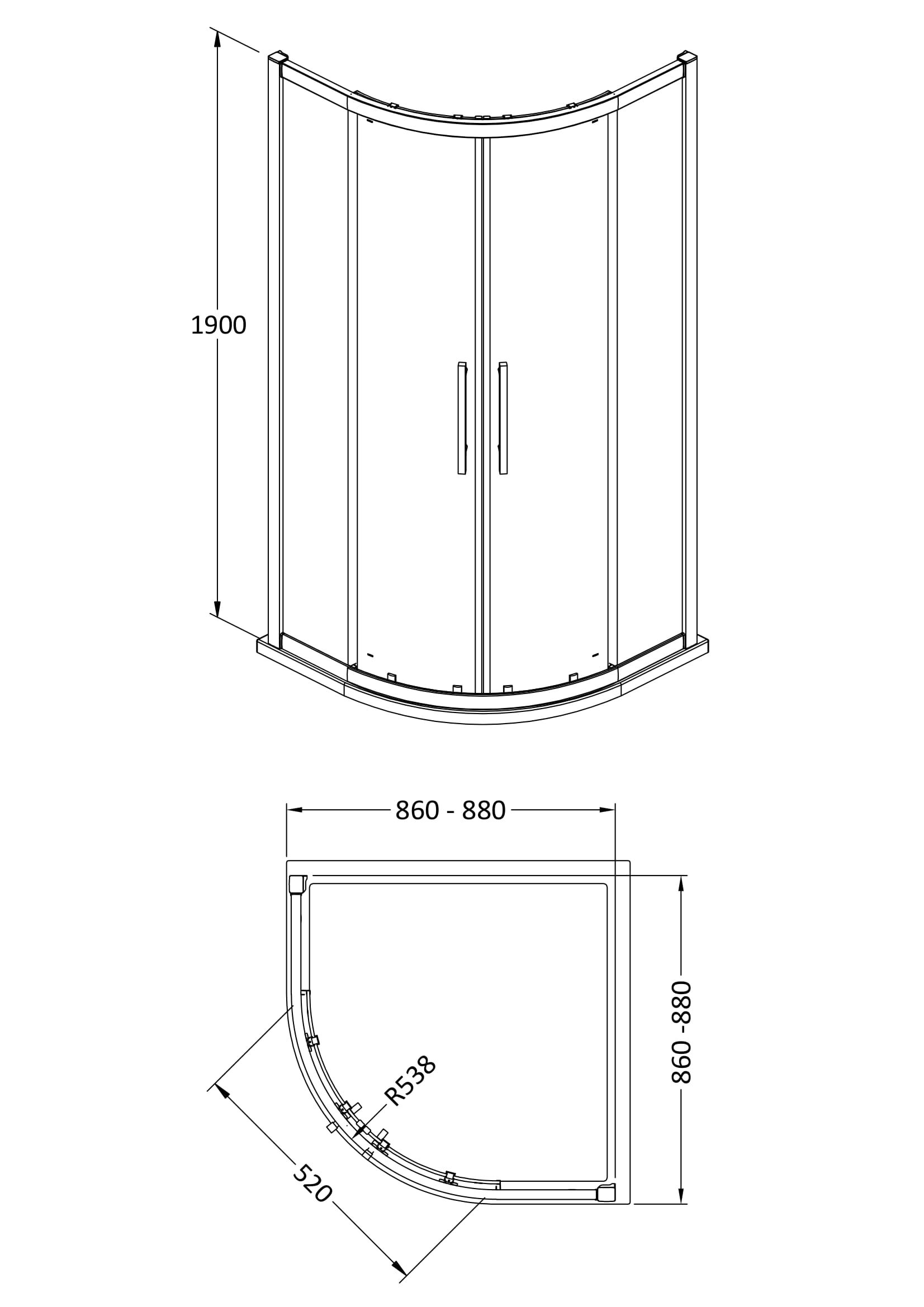 Apex 900mm Quadrant 8mm Glass