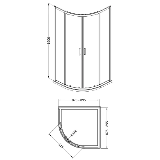 Bayswater 1900 x 900 x 900mm Quandrant Shower Enclosure - Brushed Brass