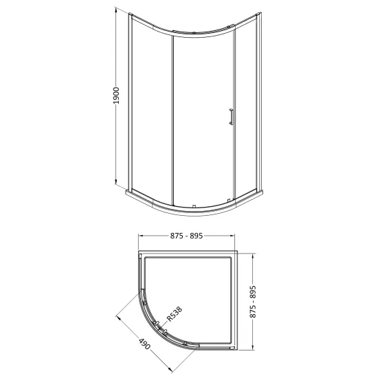 Bayswater 1900mm x 900mm Single Door Quadrant - Chrome