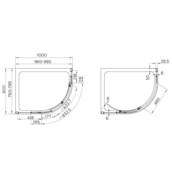 Onisa 8 1000x800mm Single Door Quadrant
