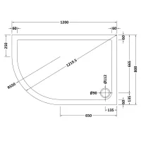 Offset Quadrant Slimline Shower Tray Right Hand 1200 x 900mm