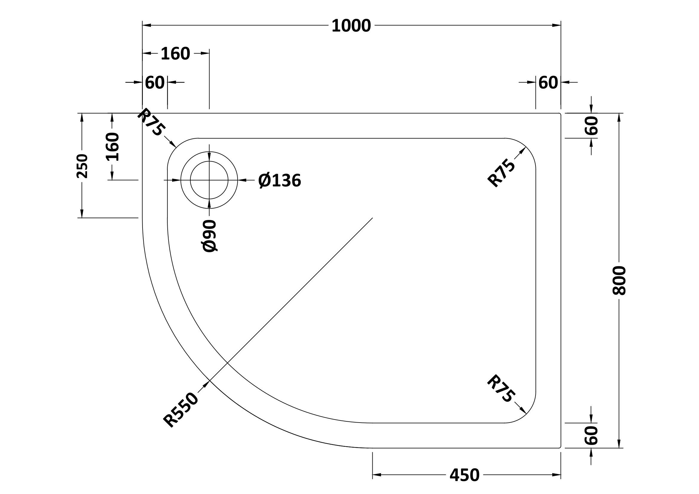 Hydro45 1000 x 800mm Anti Slip Offset Quadrant Left Hand Tray