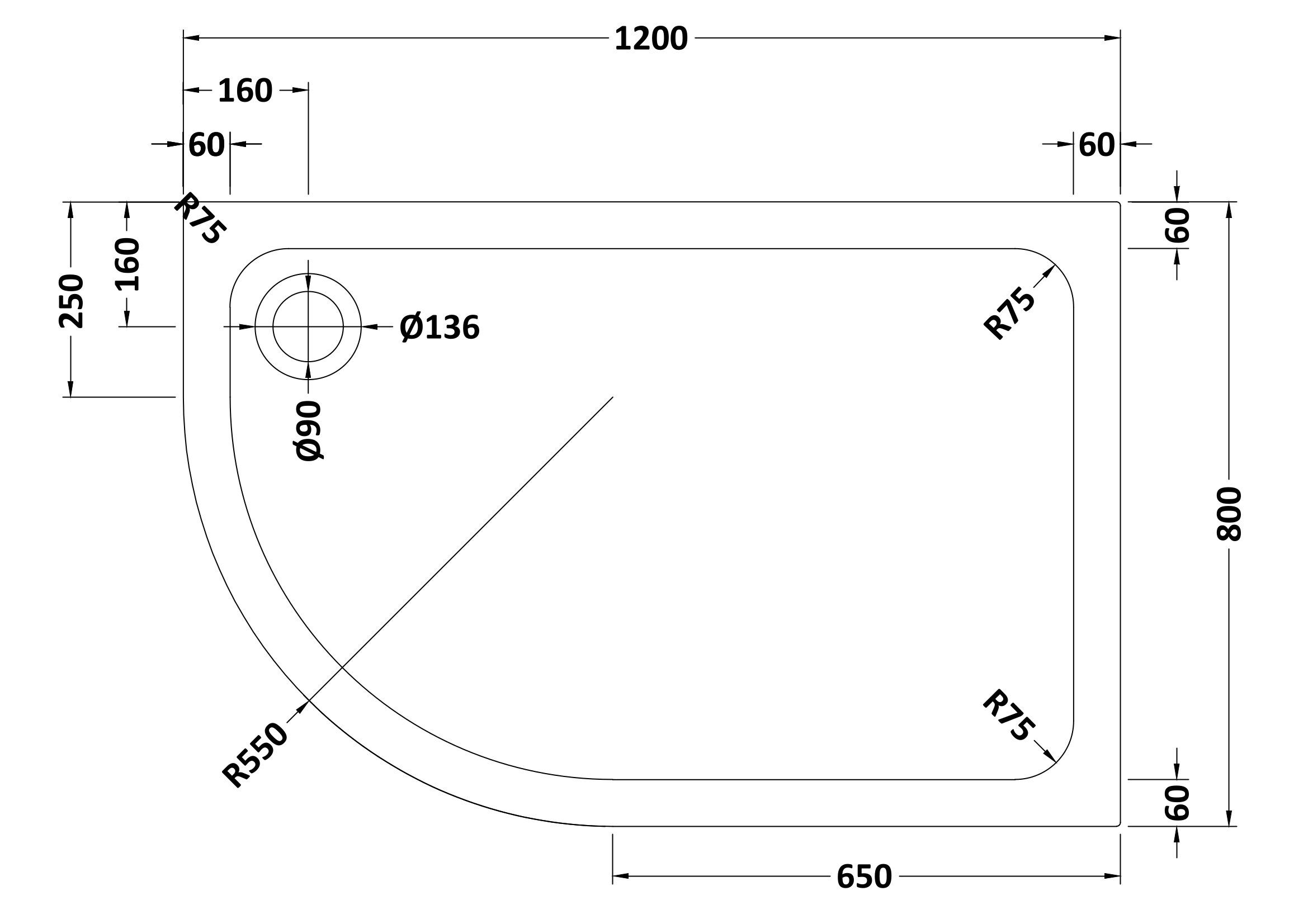 Hydro45 1200 x 800mm Qudrant Anti Slip Left Hand Shower Tray