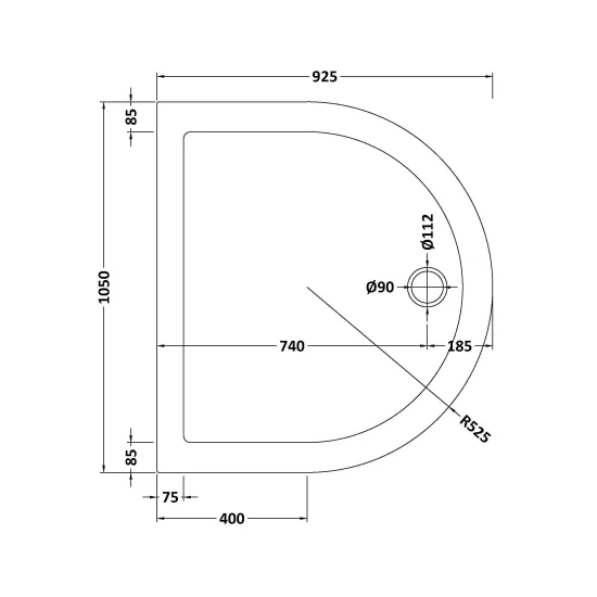 Bayswater D Shape Slimline Shower Tray 1050mm - White
