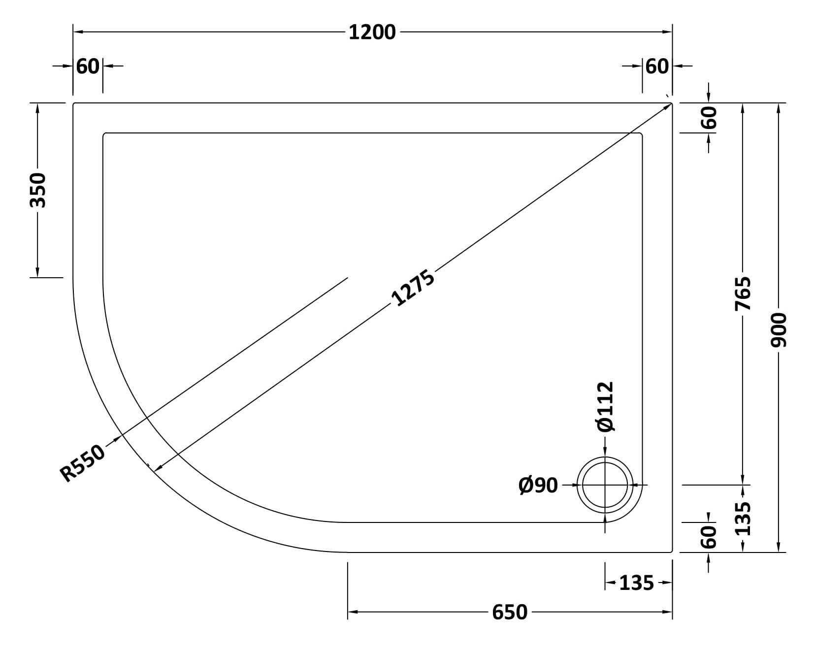 Bayswater Offset Quadrant Slimline Shower Tray Left Hand 1200 x 900mm