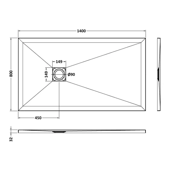 Bayswater Rectangular Slimline Shower Tray 1400 x 800mm - White