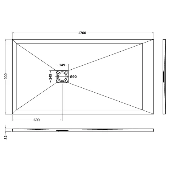 Bayswater Rectangular Slimline Shower Tray 1700 x 900mm - Black