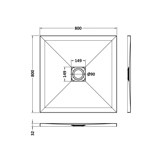 Bayswater Square Slimline Shower Tray 800 x 800mm - Black
