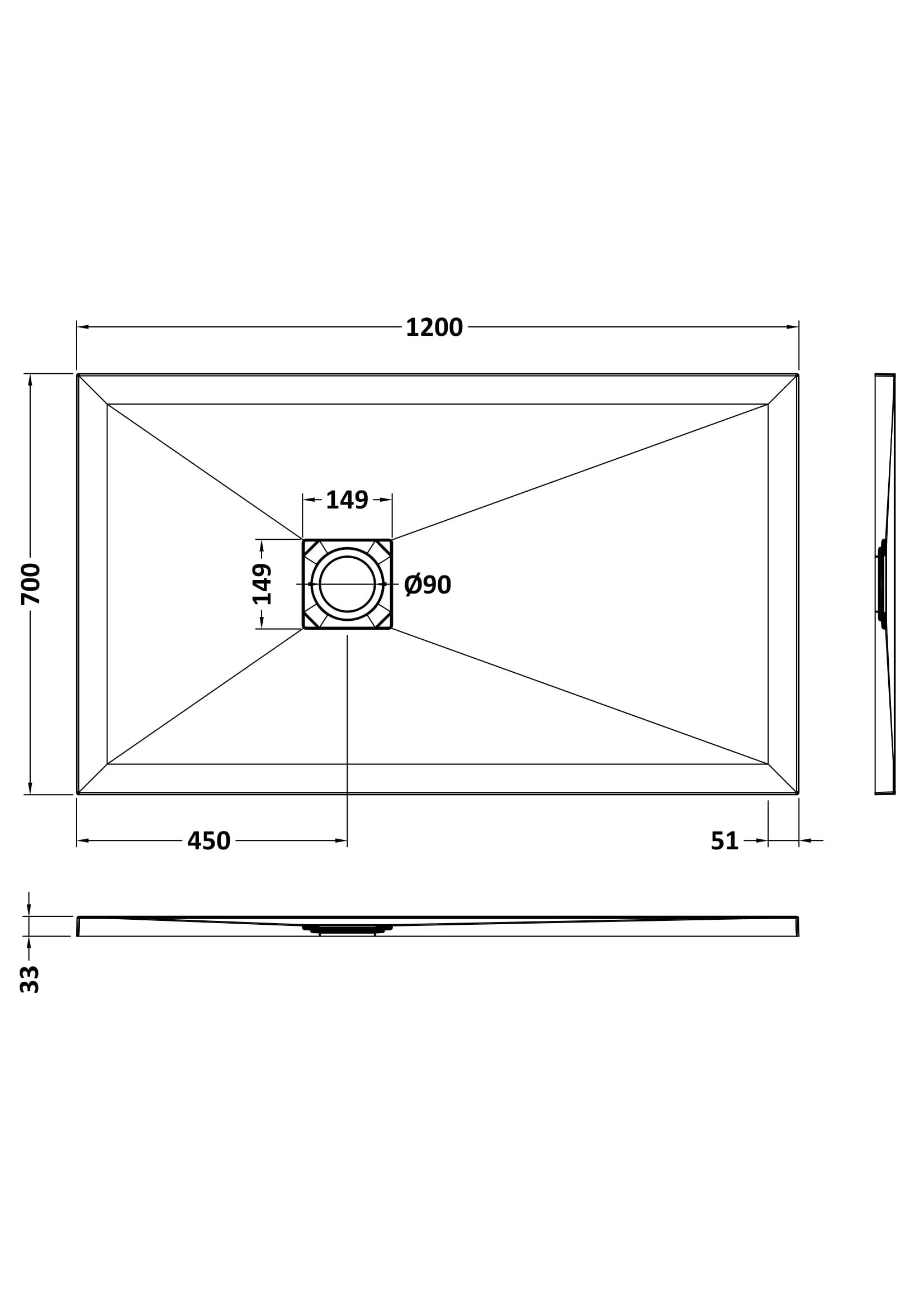 Hydro45 Rectangular Shower Tray 1200x700mm