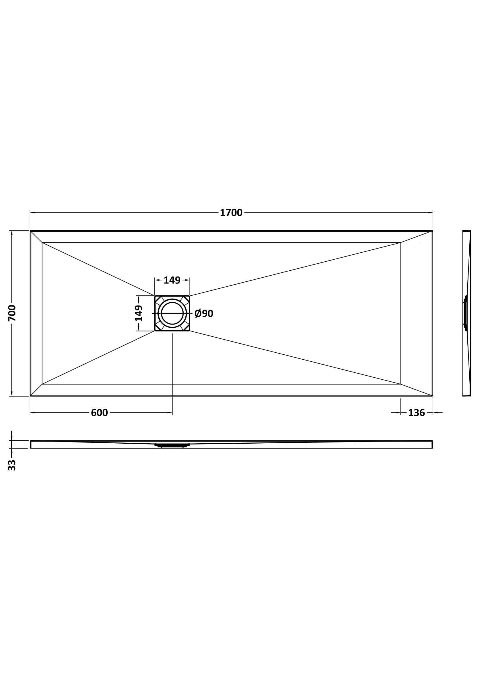 Hydro45 Rectangular Shower Tray 1700x700mm
