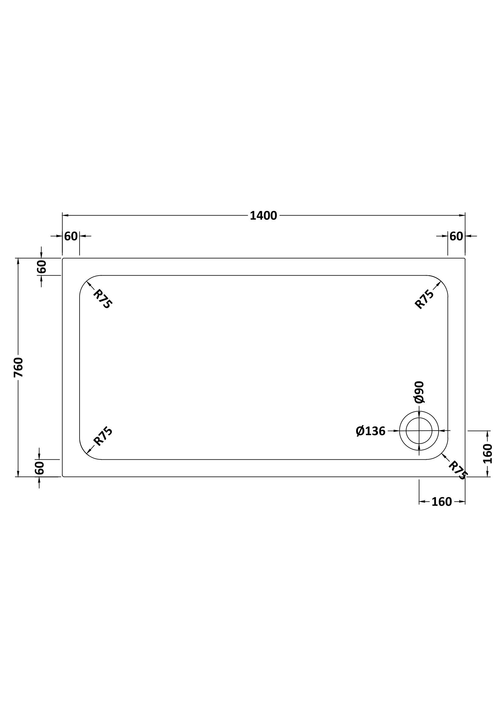 1400 X 760mm Stone Shower Tray
