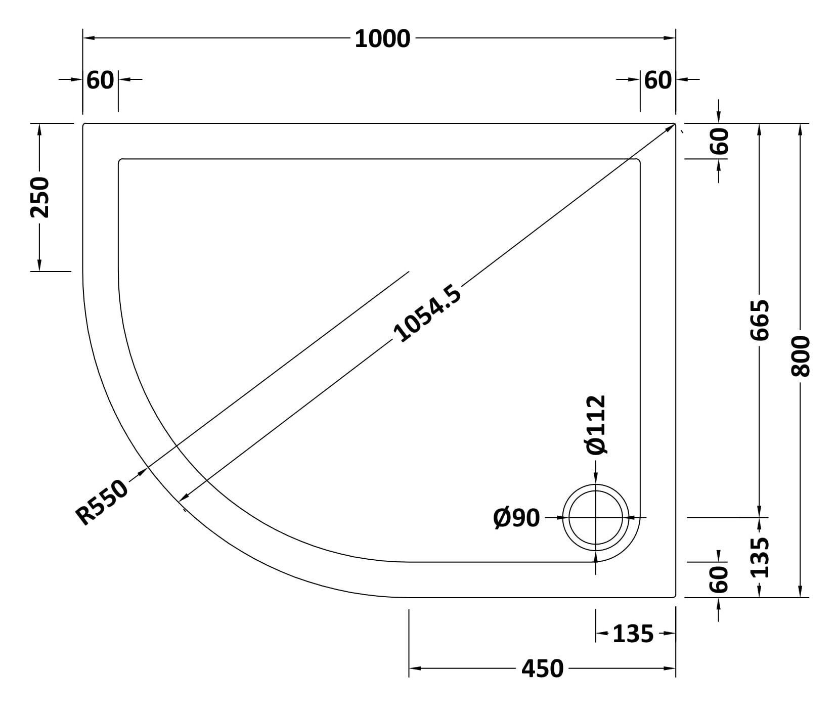Bayswater Offset Quadrant Slimline Shower Tray Left Hand 1000 x 800mm