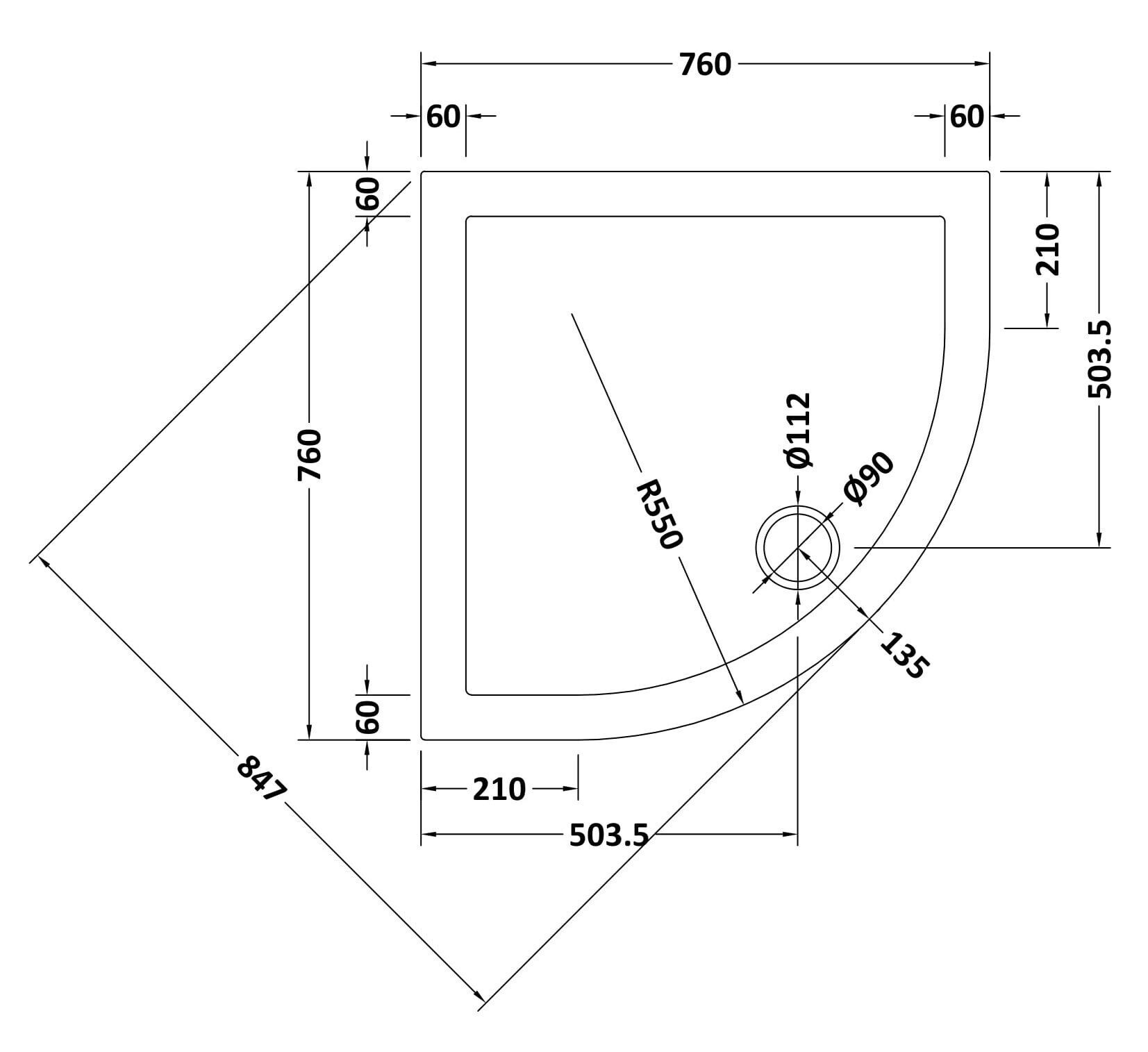 Bayswater Quadrant Slimline Shower Tray 760 x 760mm - White