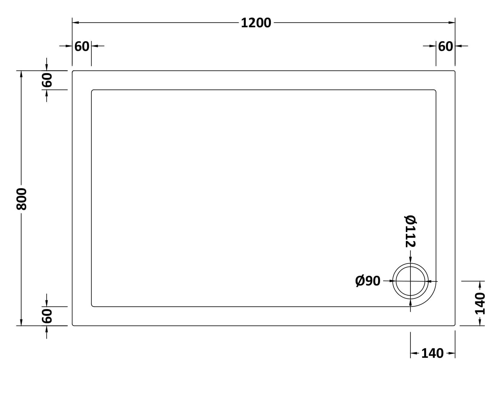 Bayswater Rectangular Slimline Shower Tray 1200 x 800mm - White