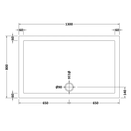 Bayswater Rectangular Slimline Shower Tray 1300 x 800mm