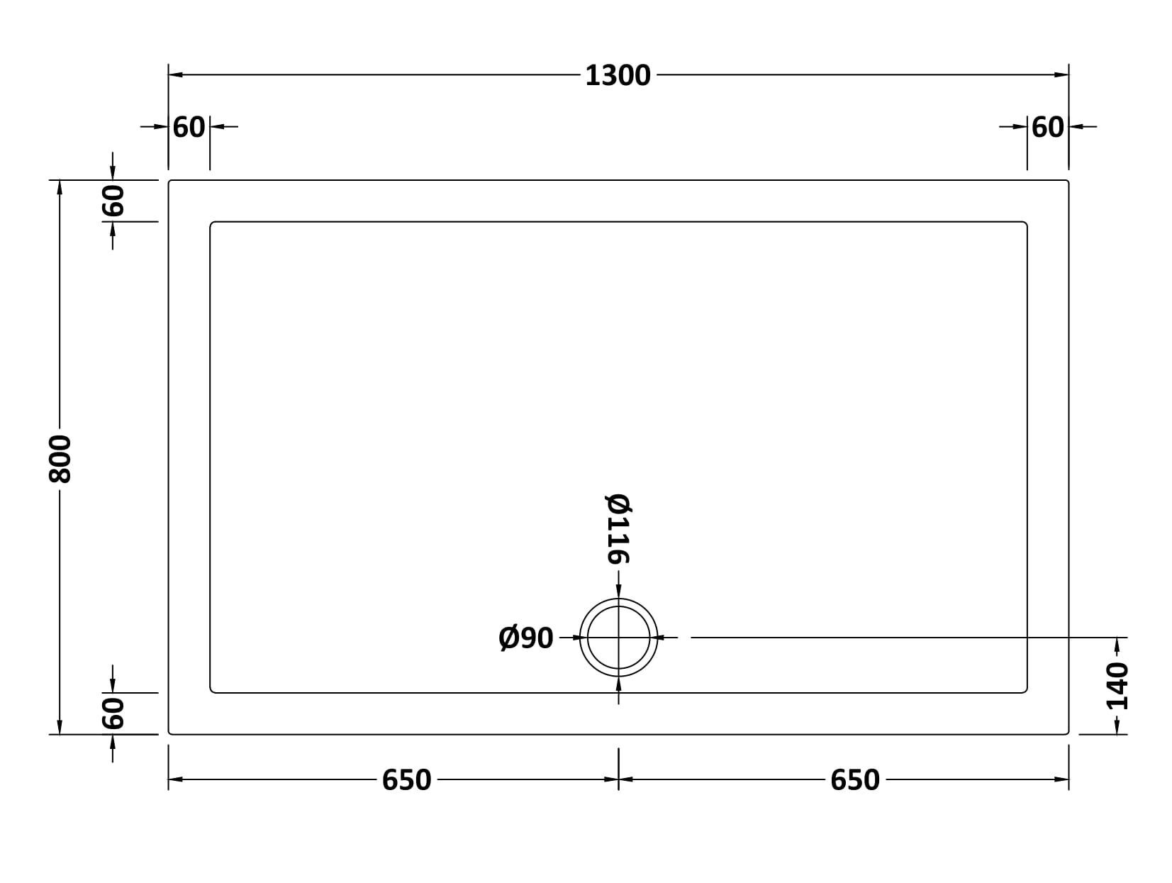 • With centre waste hole