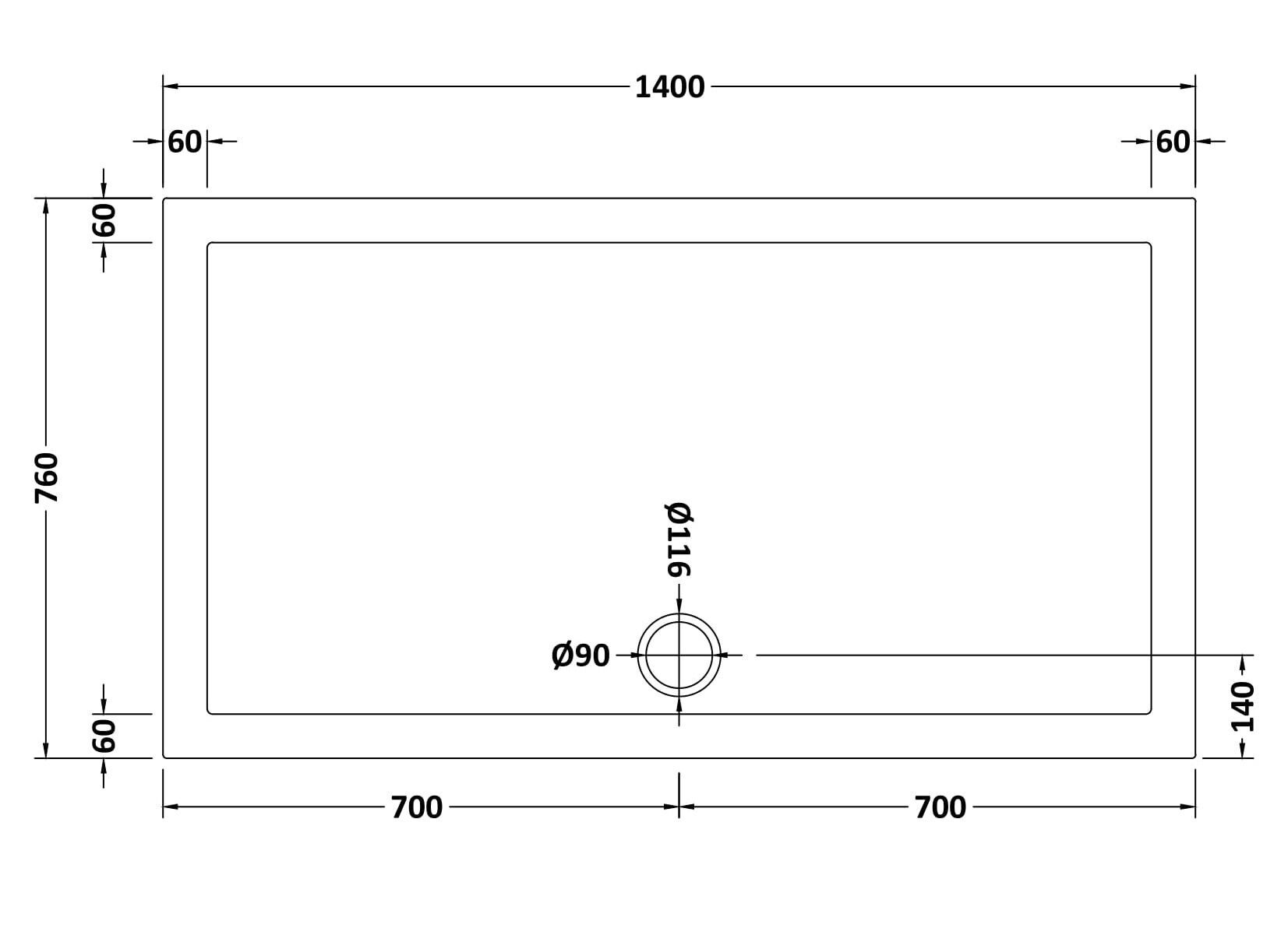 Bayswater Rectangular Slimline Shower Tray 1400 x 760mm - White