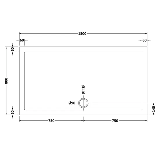 Bayswater Rectangular Slimline Shower Tray 1500 x 800mm - White