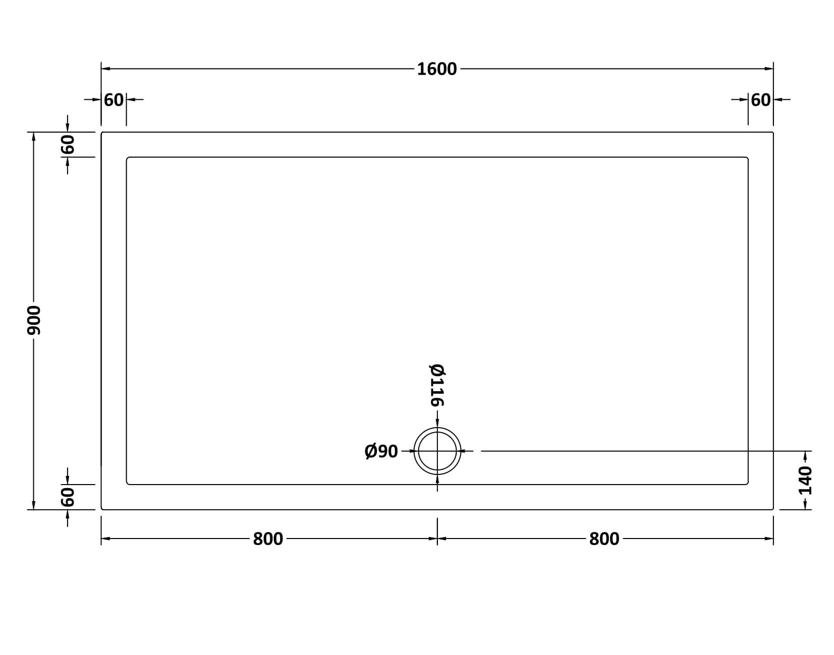 Bayswater Rectangular Slimline Shower Tray 1600 x 900mm - White