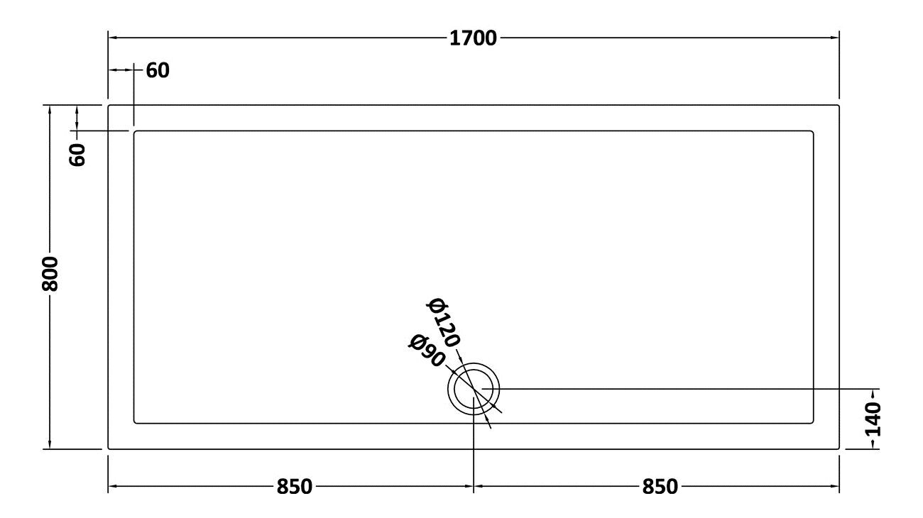 Bayswater Rectangular Slimline Shower Tray 1700 x 800mm
