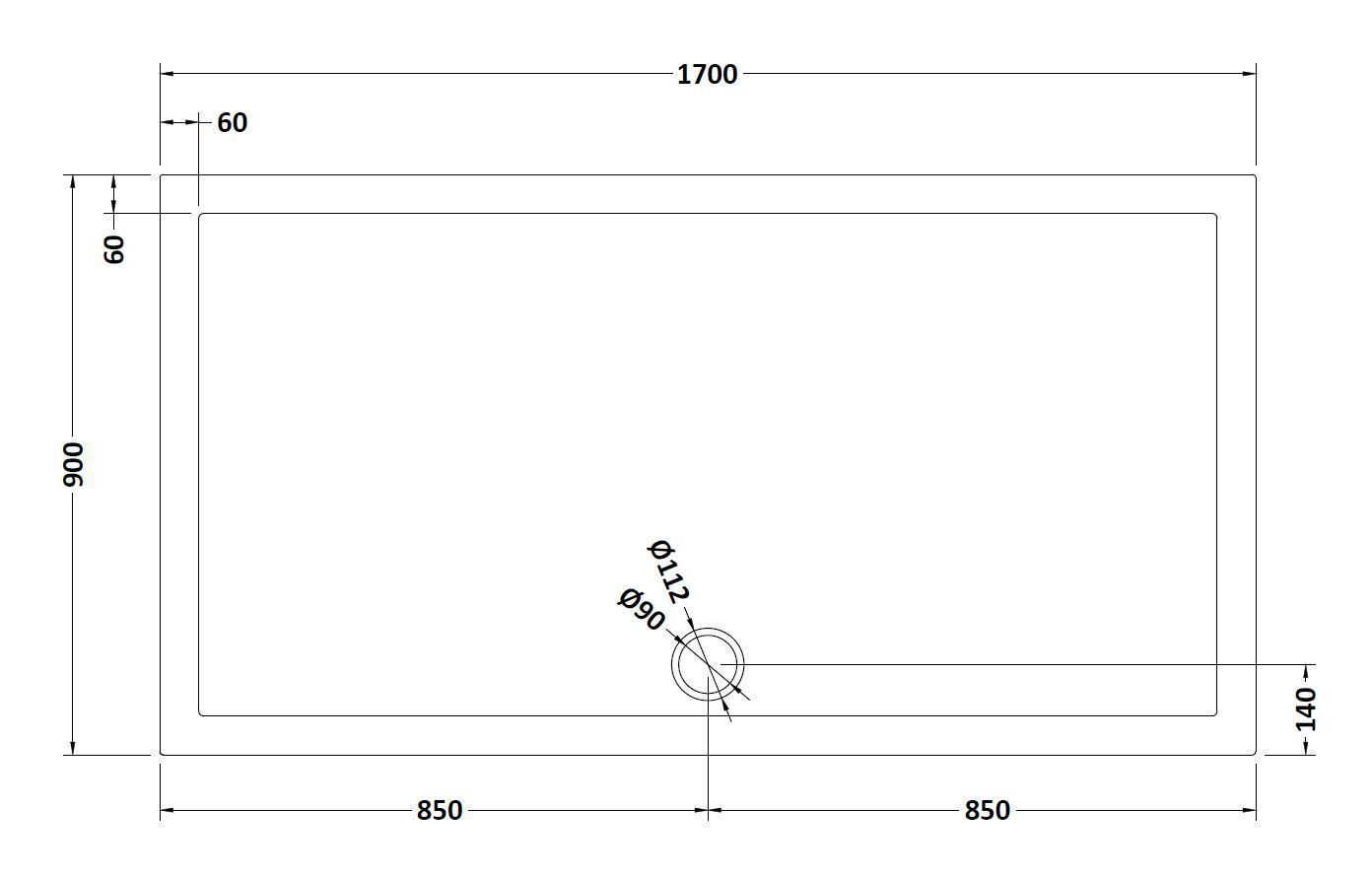 Bayswater Rectangular Slimline Shower Tray 1700 x 900mm