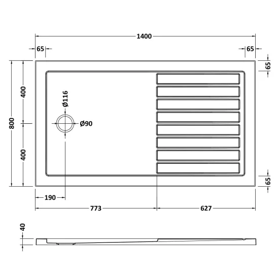 Bayswater Rectangular Walk-In Slimline Shower Tray 1400 x 800mm - Slate Grey