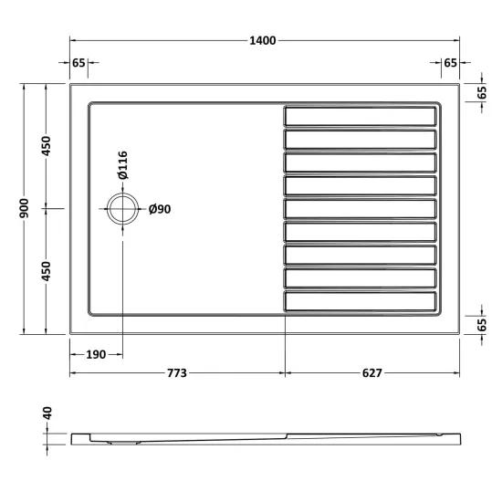 Bayswater Rectangular Walk-In Slimline Shower Tray 1400 x 900mm - Slate Grey