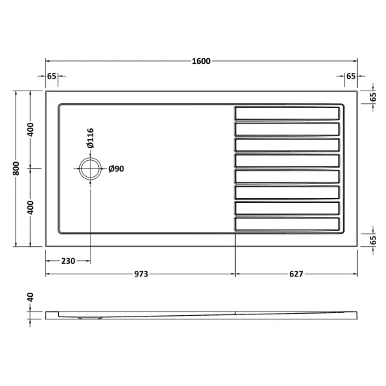 Bayswater Rectangular Walk-In Slimline Shower Tray 1600 x 800mm - Slate Grey