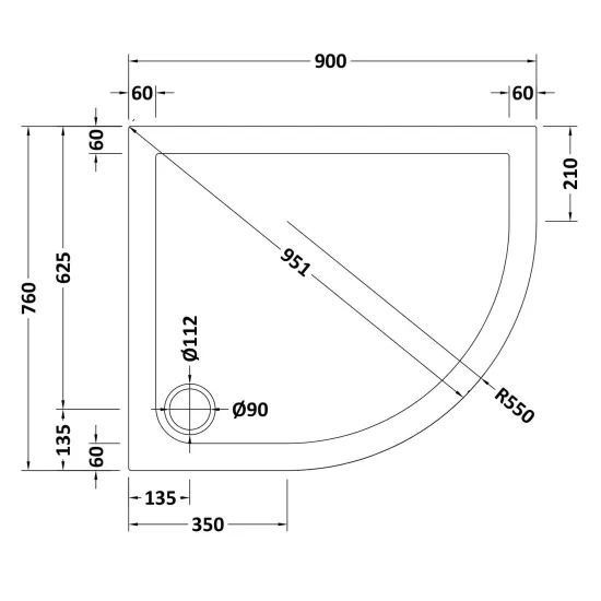 Bayswater Slip Resistant Offset Quadrant Slimline Shower Tray Right Hand 900 x 760mm - White
