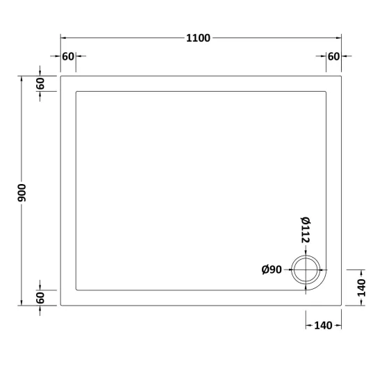 Bayswater Slip Resistant Rectangular Slimline Shower Tray 1100 x 900mm - White