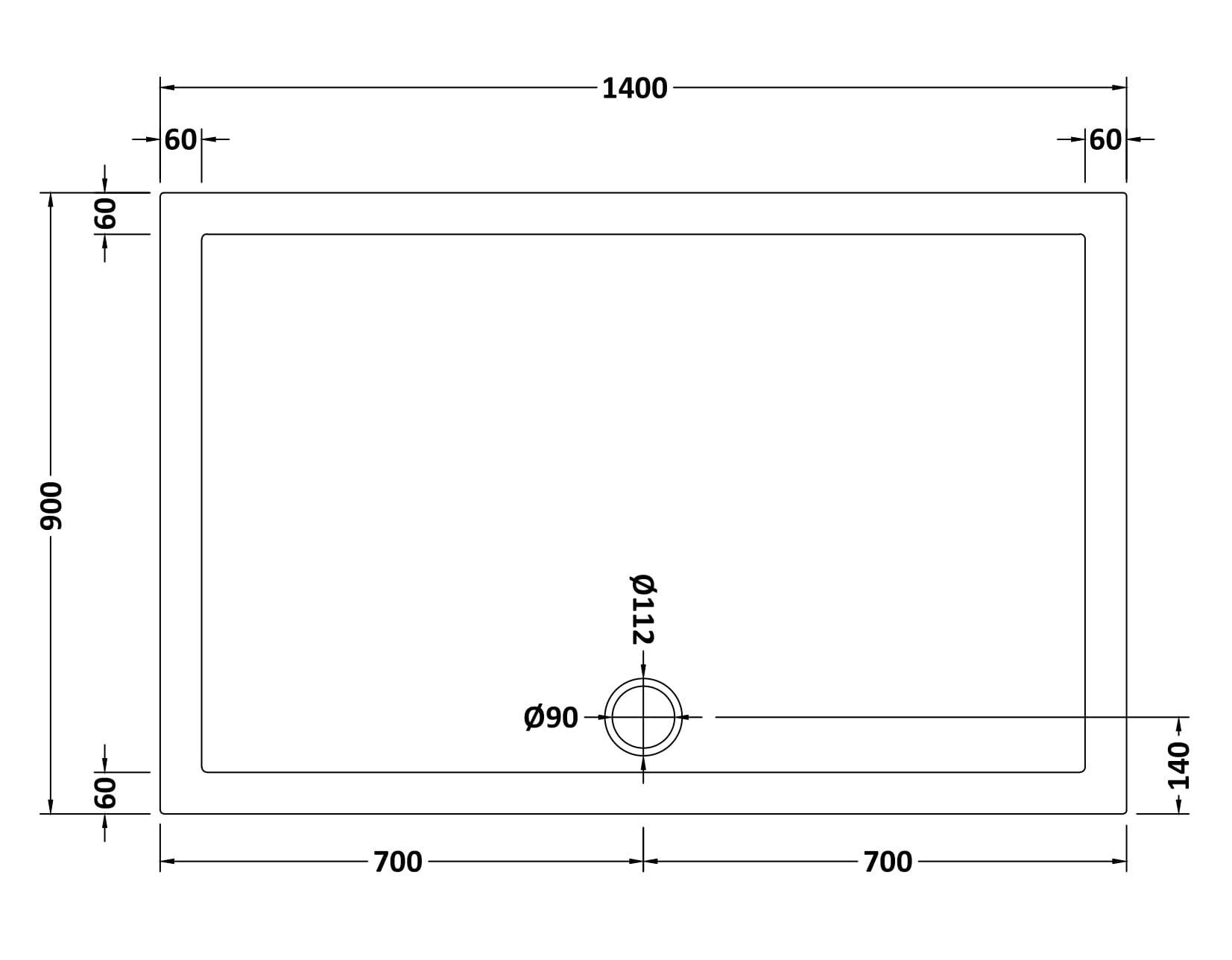 Bayswater Slip Resistant Rectangular Slimline Shower Tray 1400 x 900mm - White