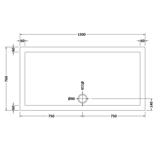 Bayswater Slip Resistant Rectangular Slimline Shower Tray 1500 x 760mm - White