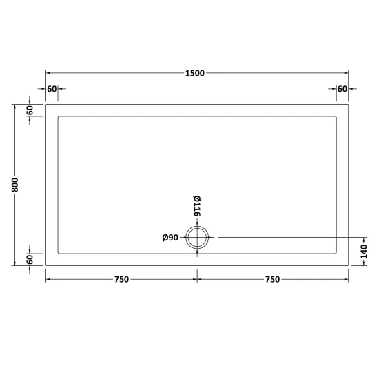 Bayswater Slip Resistant Rectangular Slimline Shower Tray 1500 x 800mm - White
