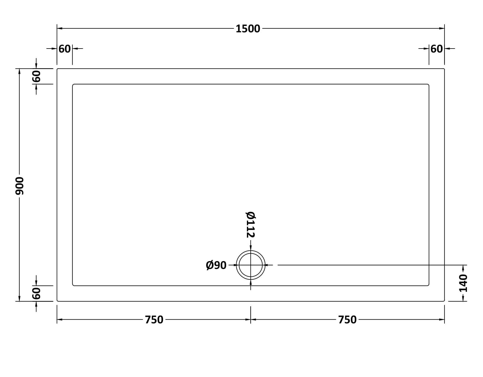Bayswater Slip Resistant Rectangular Slimline Shower Tray 1500 x 900mm - White