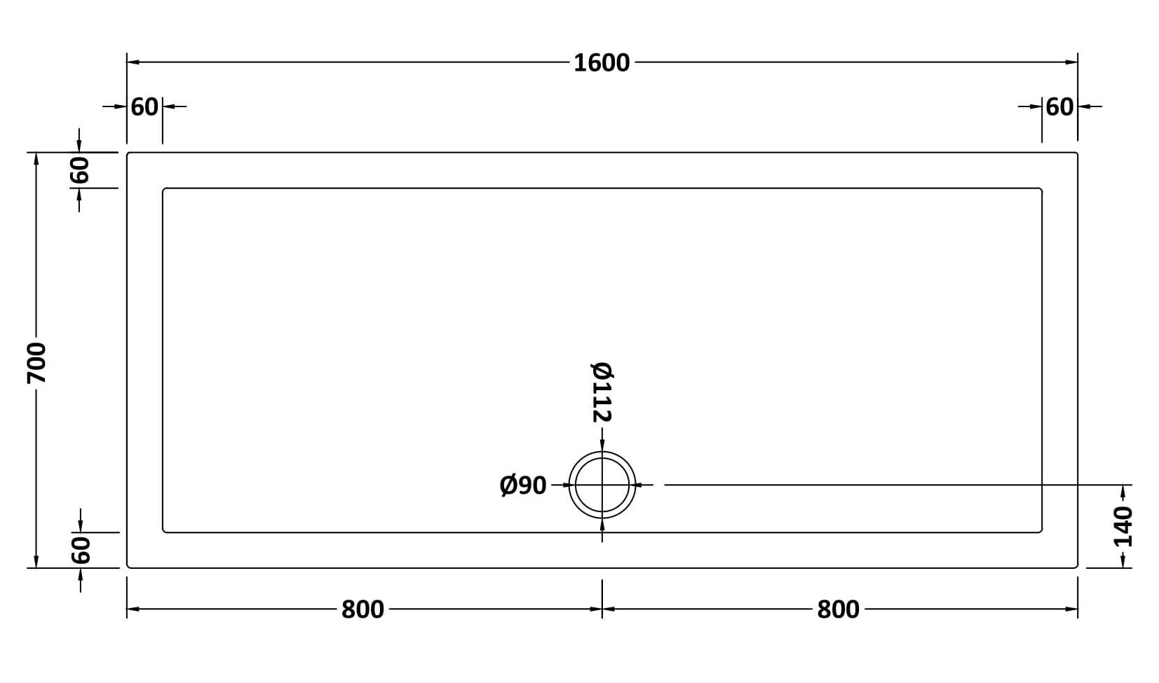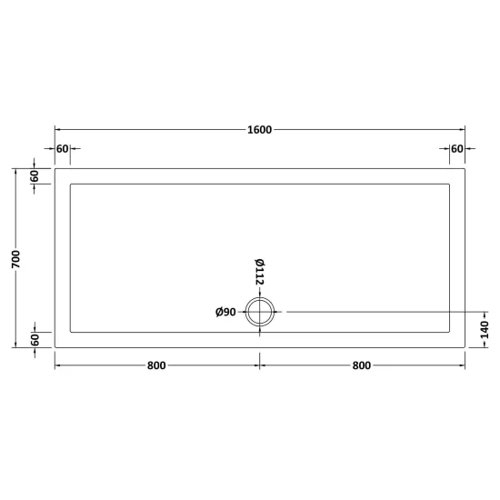 Bayswater Slip Resistant Rectangular Slimline Shower Tray 1600 x 700mm - White