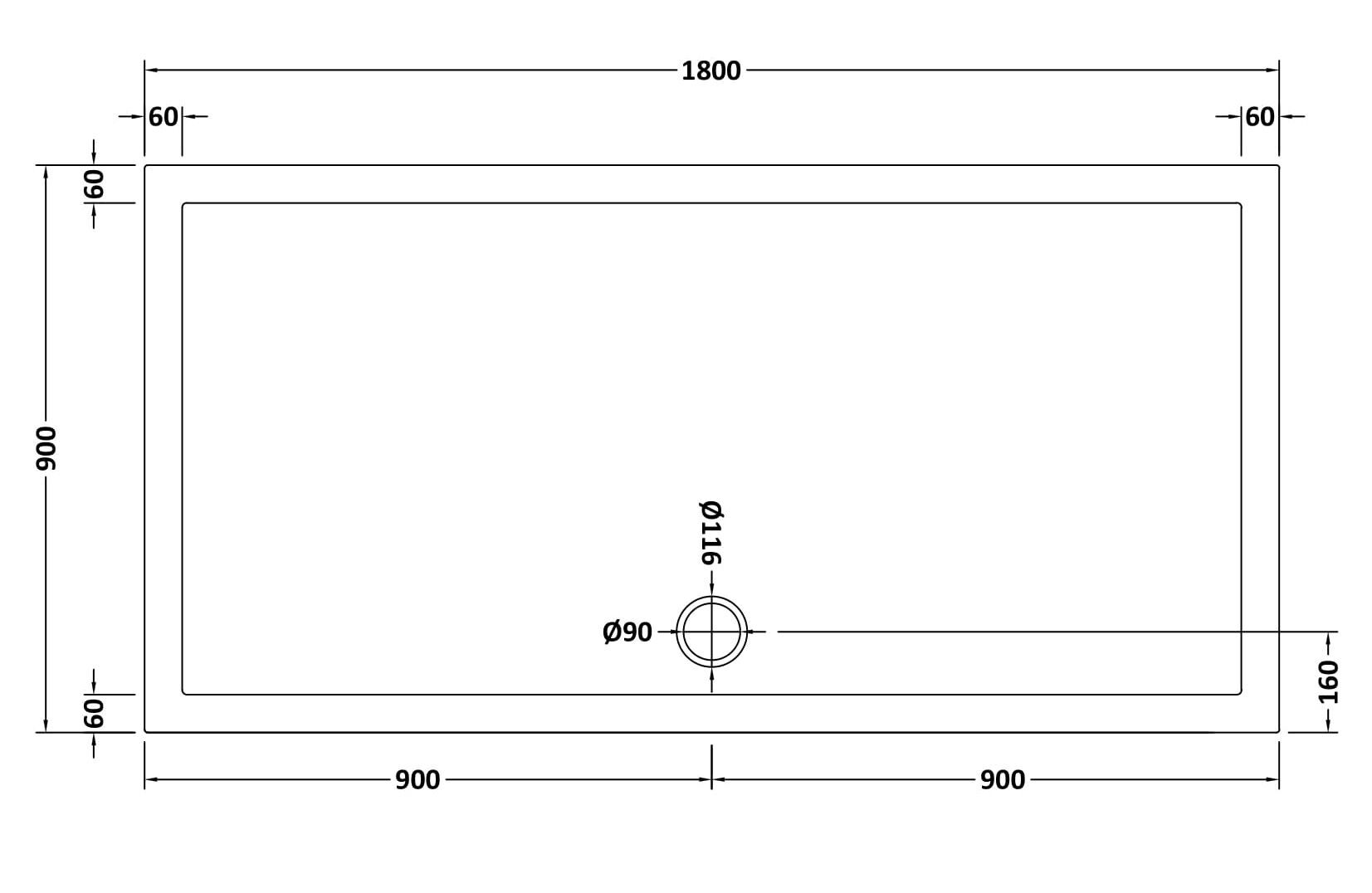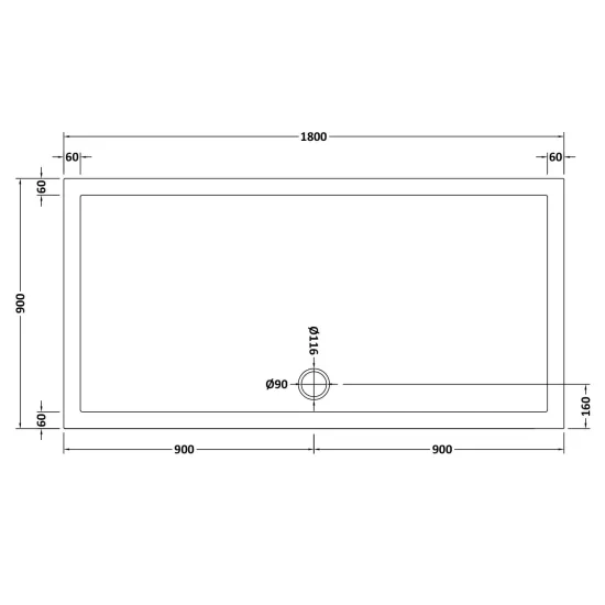 Bayswater Slip Resistant Rectangular Slimline Shower Tray 1800 x 900mm - White