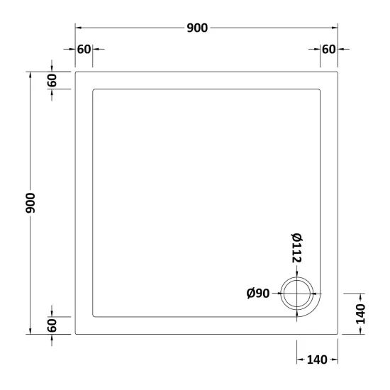 Bayswater Slip Resistant Square Slimline Shower Tray 900 x 900mm - White