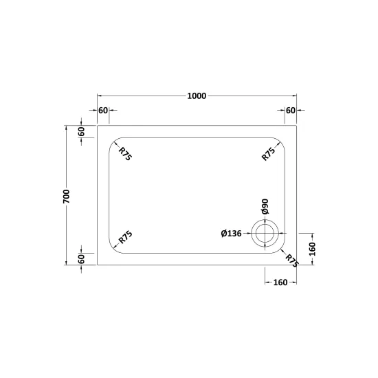 Hydro45 1000 x 700mm Anti Slip Rectangular Shower Tray