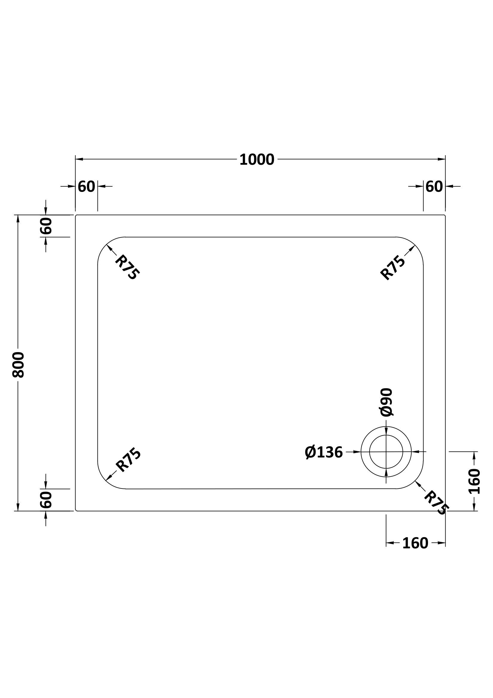 Hydro45 1000 X 800mm Rectangular Shower Tray with Upstands