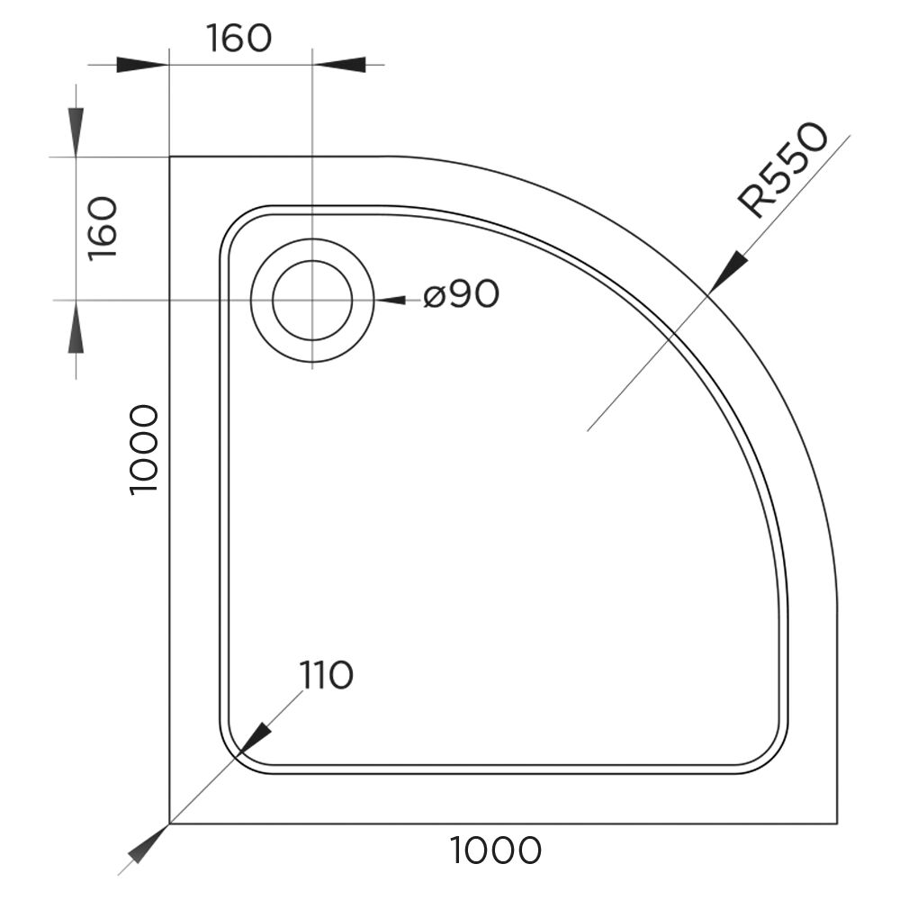 Hydro45 1000mm White Anti Slip Quad Shower Tray