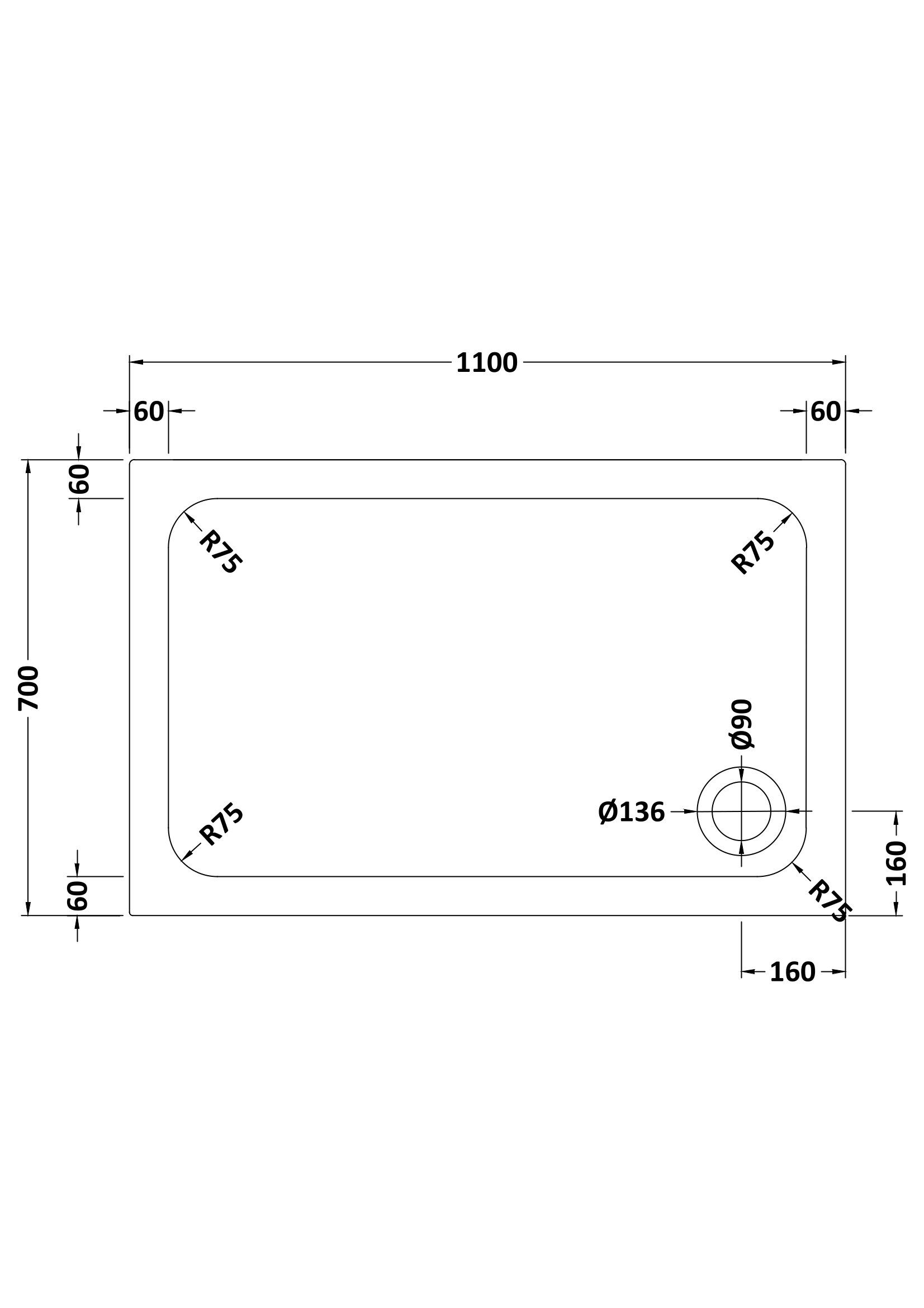 Hydro45 1100 x 700mm Rectangular Shower Tray