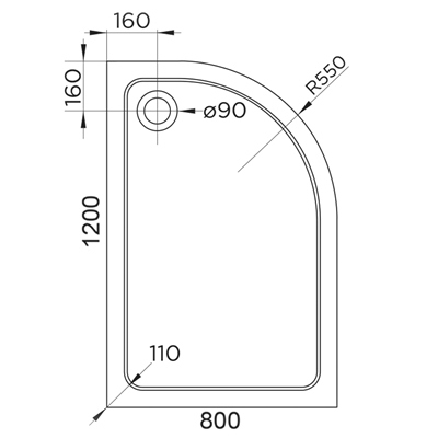 Hydro45 1200 X 800mm Right Handed Offset Quadrant Shower Tray