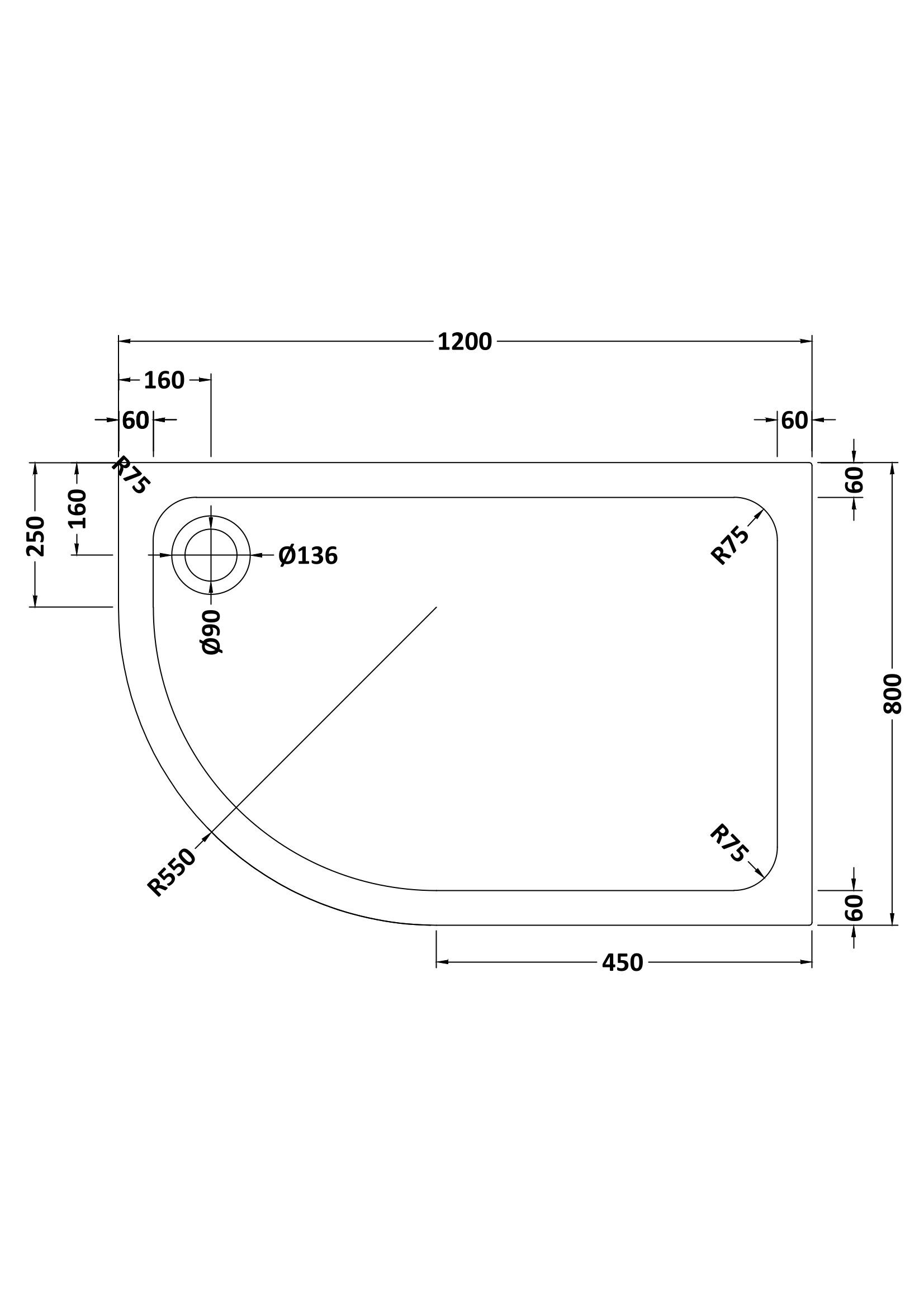 Hydro45 1200 X 900mm Left Handed Offset Quadrant Shower Tray