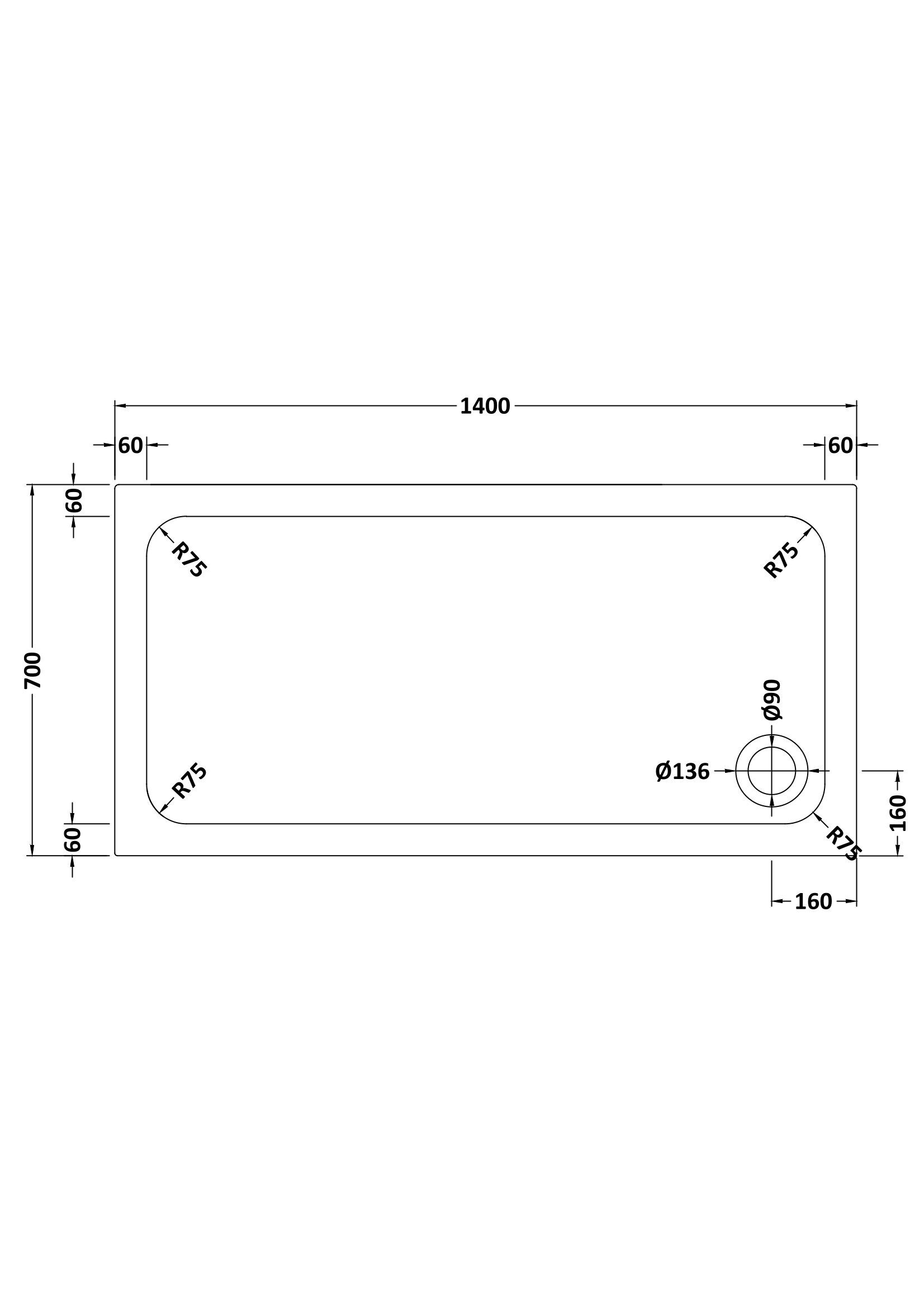 Hydro45 1400 x 700mm Anti Slip Rectangular Shower Tray