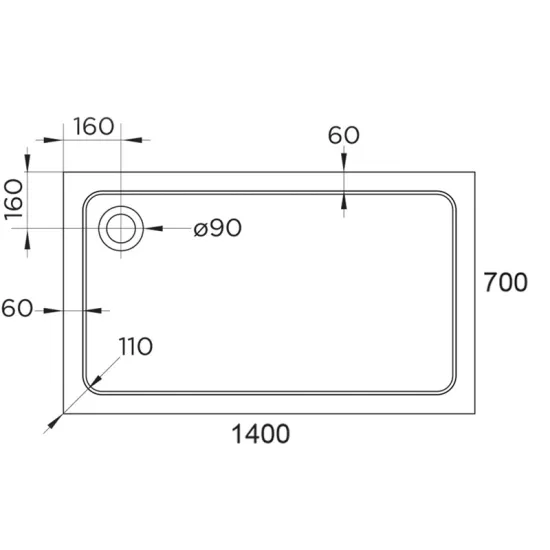 Hydro45 1400 x 700mm Rectangular Shower Tray