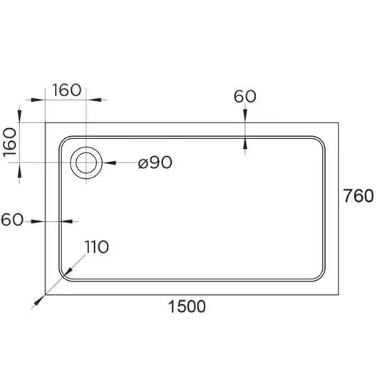 Hydro45 1500 x 760mm Rectangular Shower Tray