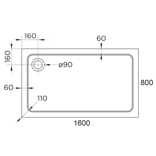 Hydro45 1600 x 800mm Rectangular Shower Tray
