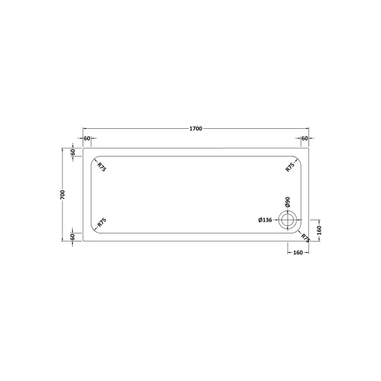 Hydro45 1700 x 700mm Anti Slip Rectangular Shower Tray