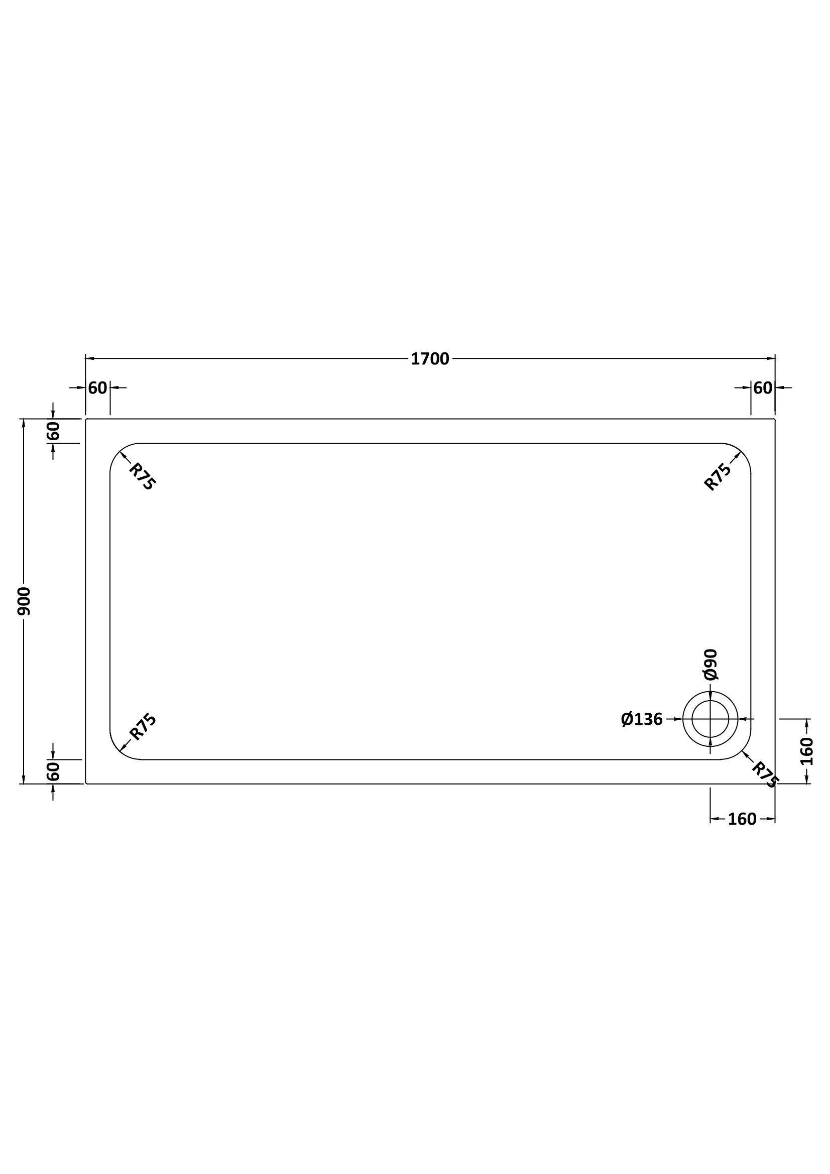 Hydro45 1700 x 900mm Anti Slip Rectangular Shower Tray